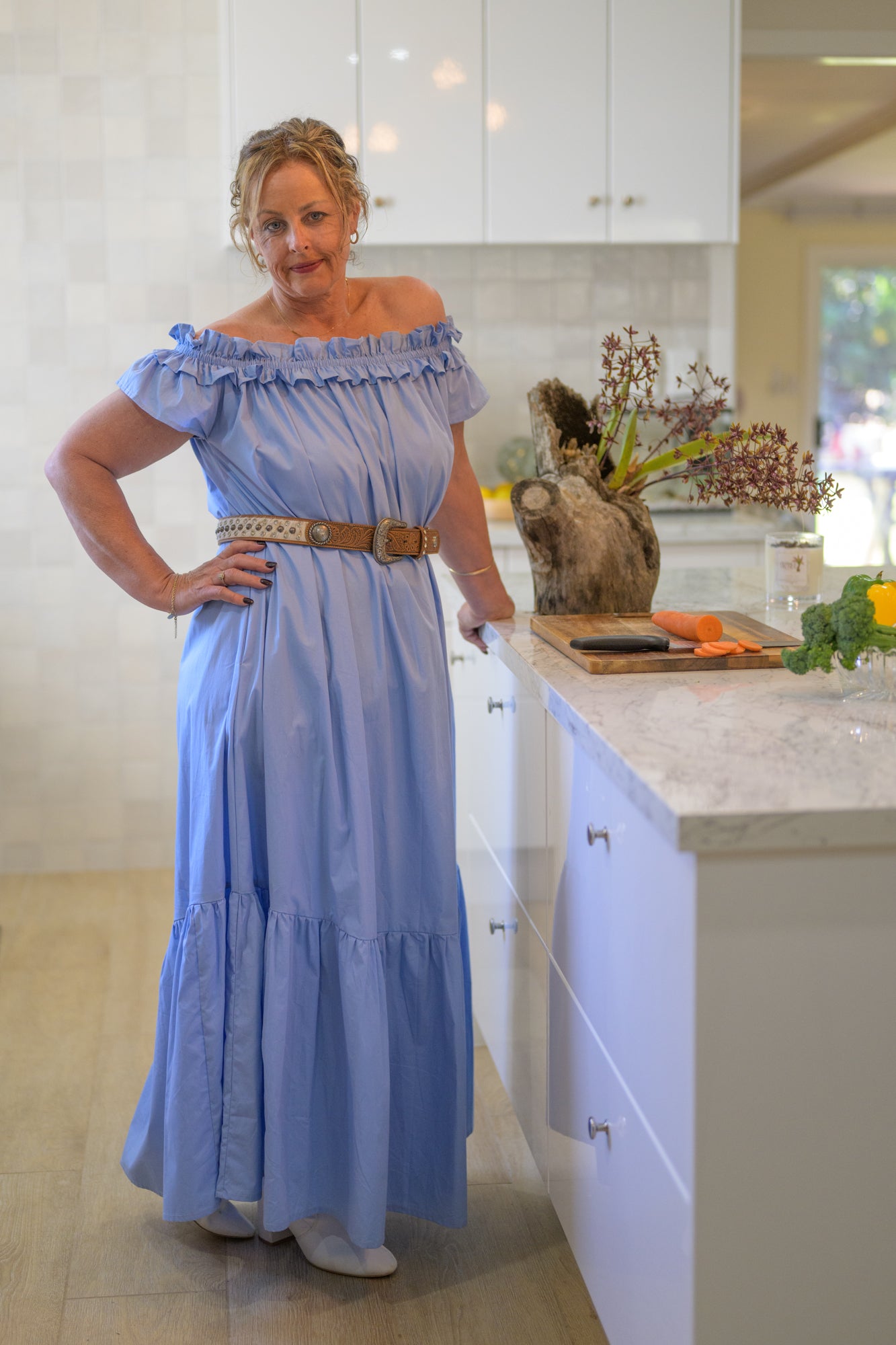 The elastic trim lets you wear it how you like — pulled up for a neat strapless fit or dropped down for a cruisier vibe. Handy side pockets make it practical, while the playful ruffle detail adds that bit of extra flair without overdoing it. The River Stone also doubles as an incredible maternity option.